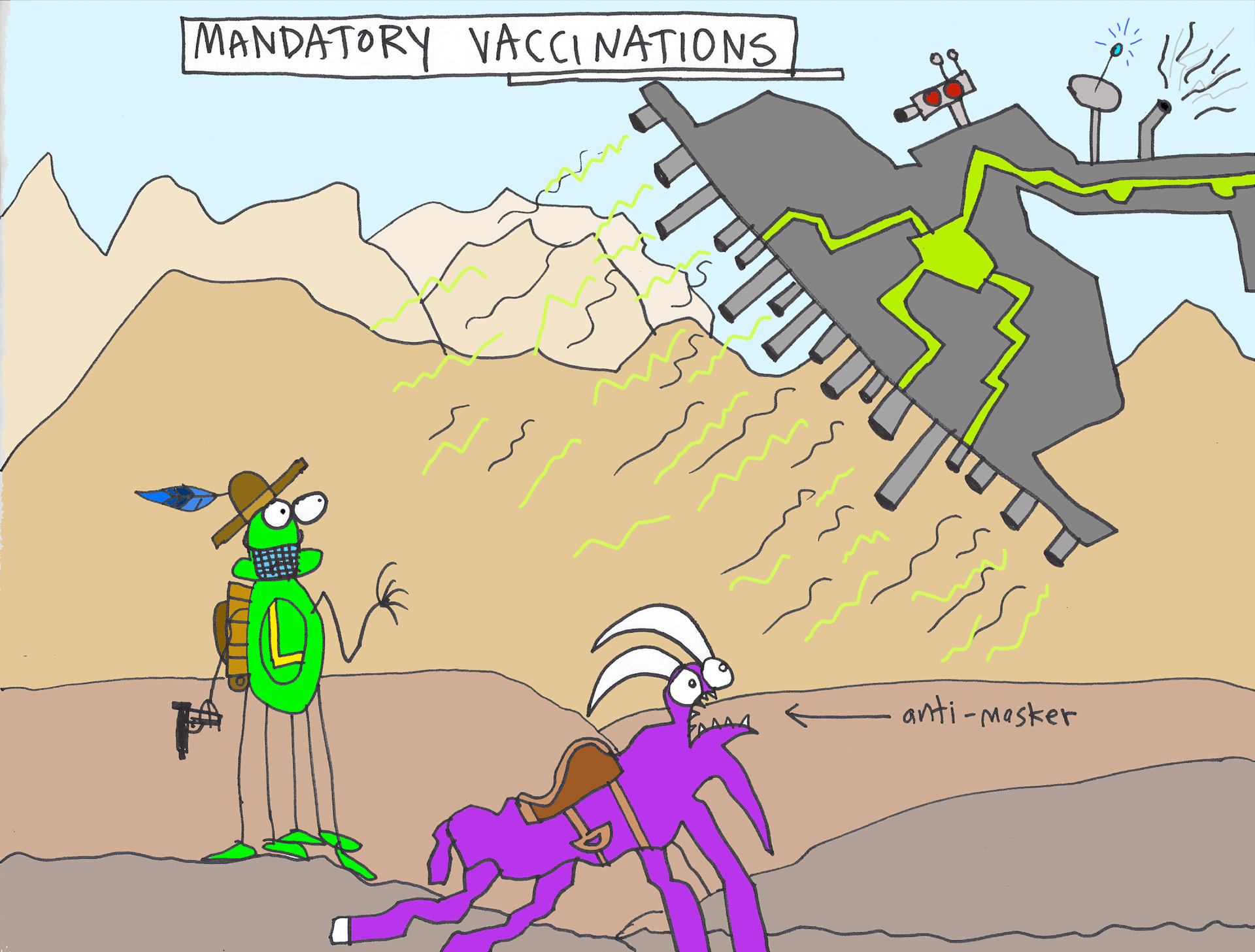 John's Commentary: I do a bunch of comics with the same setup. Leaf the scientist, performing tests on Shef (the subject). I like how Leaf is really relishing in his success in scaring Shef with the holographic Shef appearing in front of him - success on both fronts.