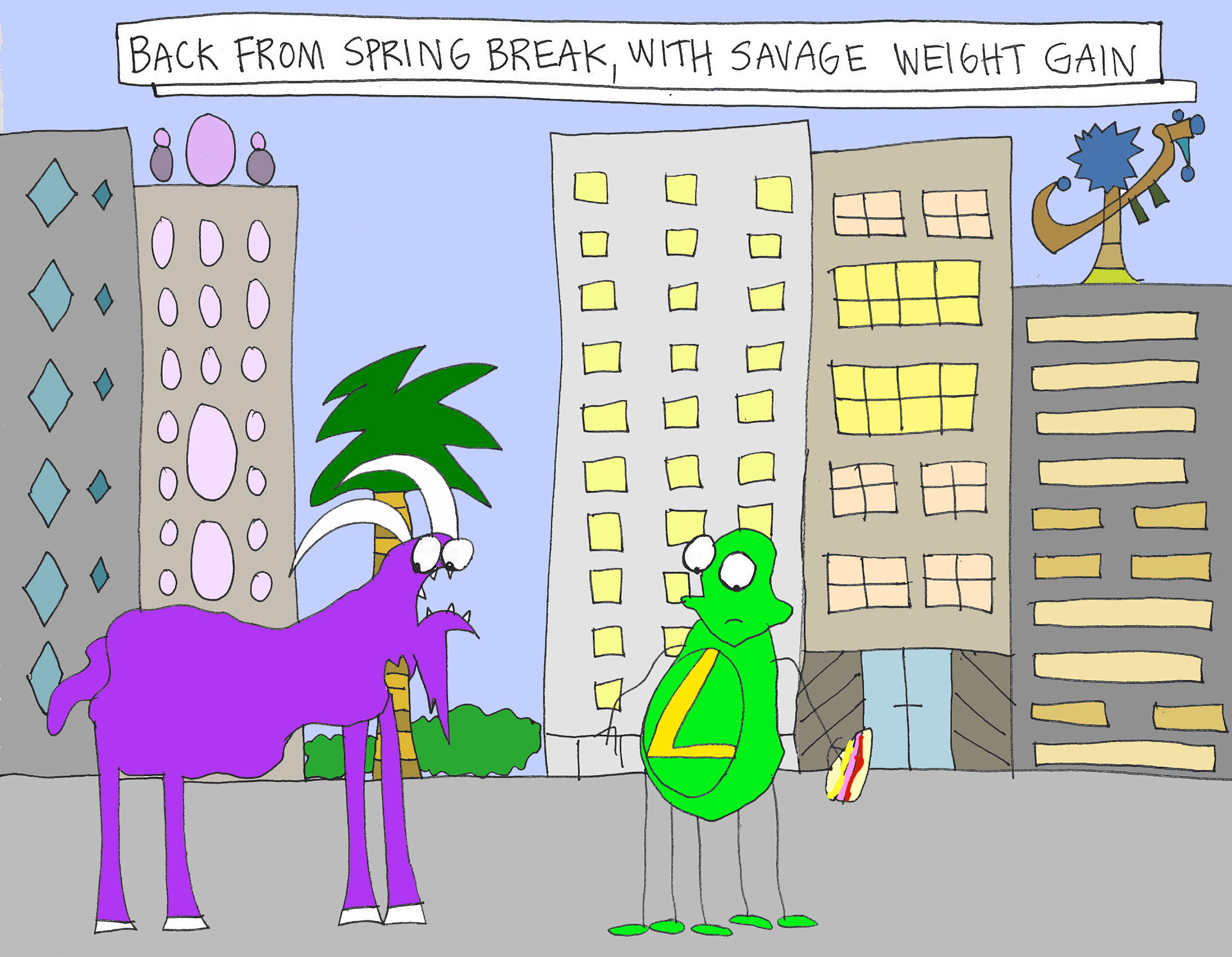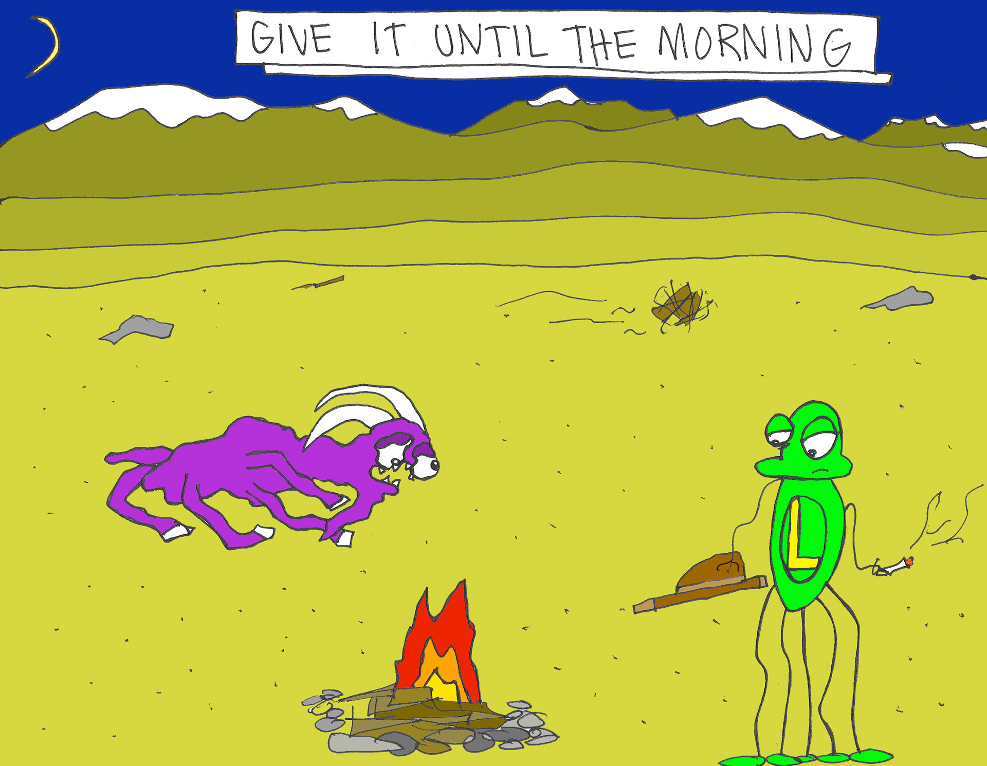 John's Commentary: Goat on fire = Goat in scorching hot desert wearing a fur coat.