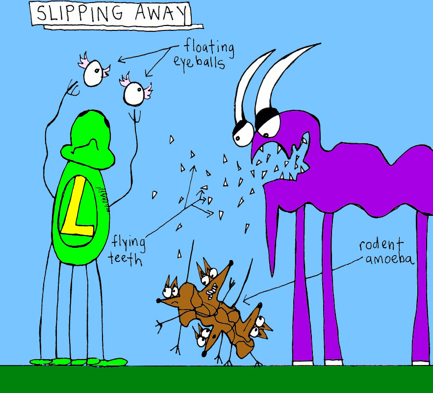 John's Commentary: Leaf often finds himself experiencing periods of mental instability...whereas Shef often imagines himself being outside of his body literally.