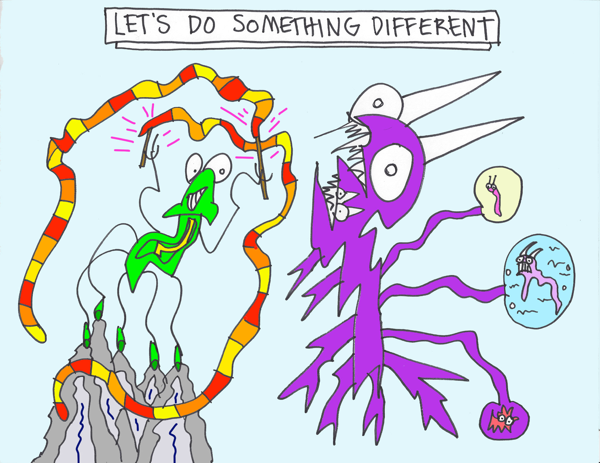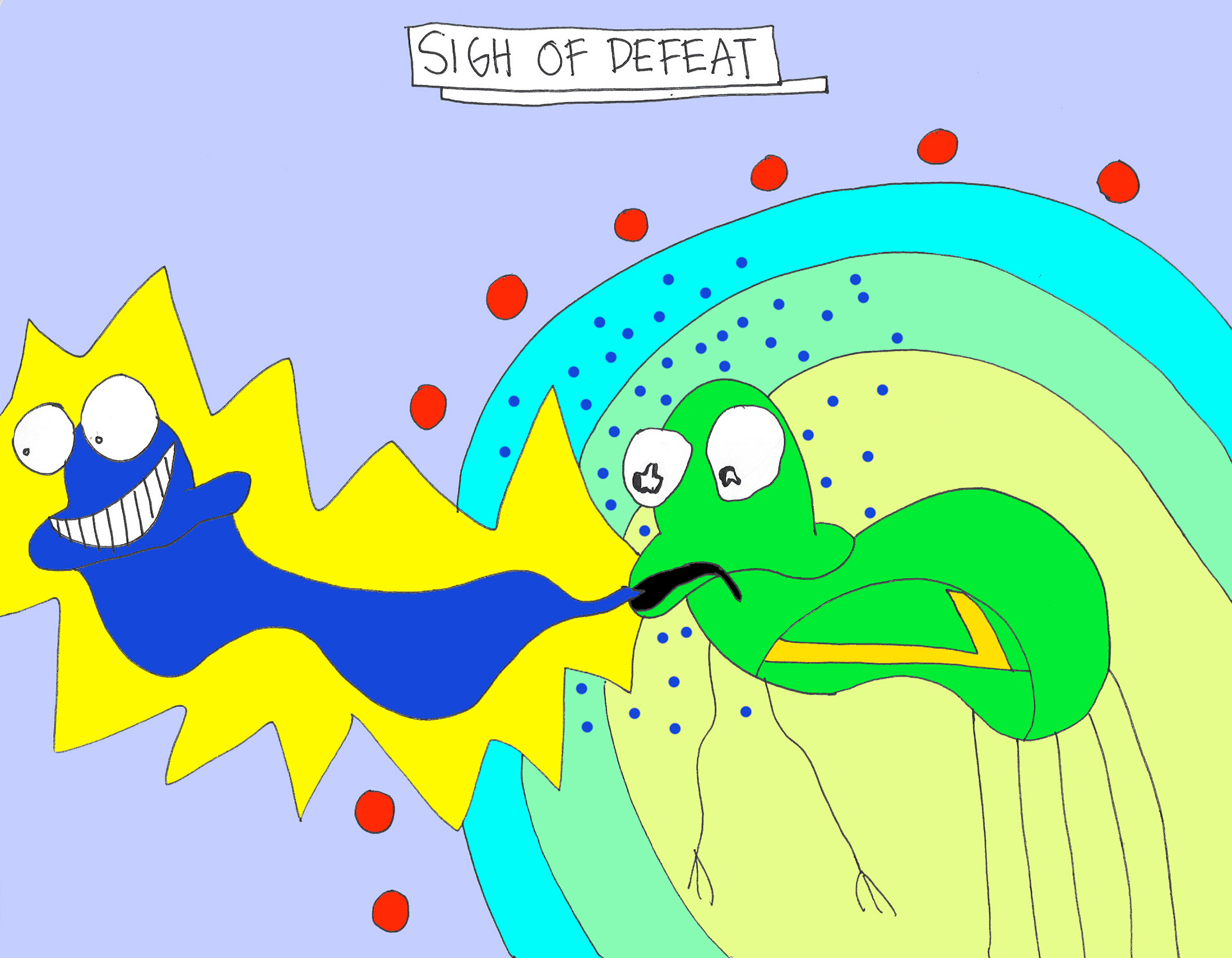 John's Commentary: Jedi Leaf makes Shef envision himself with a permanent rain cloud over him, while having just eaten another of his own kind. Jedi Shef makes Leaf imagine himself as a fly caught in a momma spiders web.